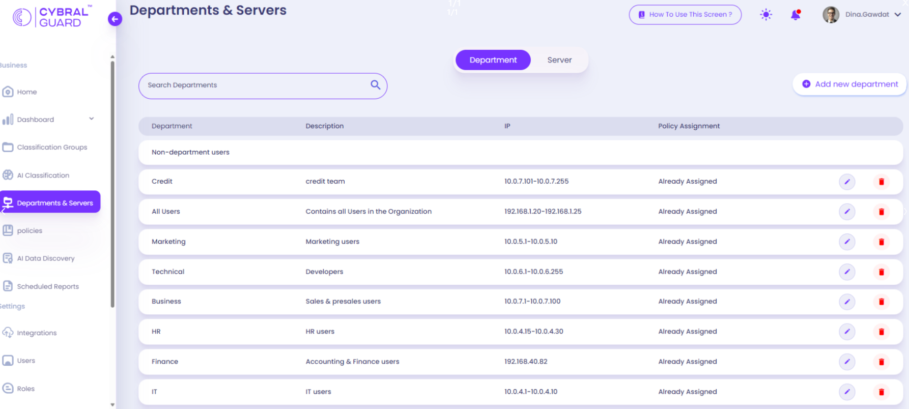 * **Assign Users to Their Appropriate Departments:** Based on organizational roles and responsibilities, determine the appropriate department for each user within the Cybral Guard portal.